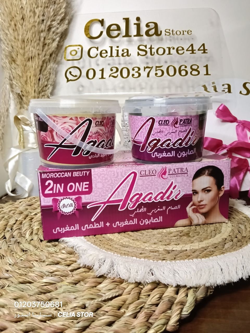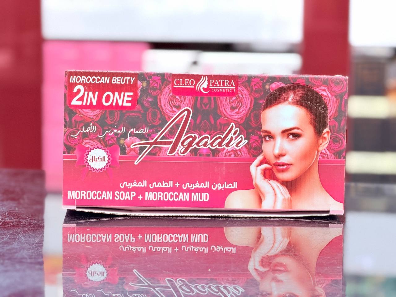 صابون مغربي وطمي علبه تحتوي علي صابون مغربي وطمي مغربي
